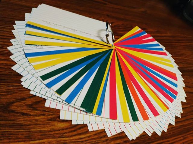 Only, again, index cards. (And I’m lazy and didn’t want to make my own out of notebook paper.)